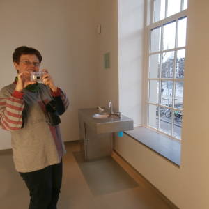Not much photo opportunity today. I tried to capture the snow falling in the afternoon, but it didn't turn out well. When I stepped outside for a moment to show someone where he had to be for his class, I saw this cat sitting next to our door. So that's it for today.